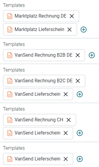 Auswahl Ihrer Templates, die für die Dokumenterzeugung verwendet werden.