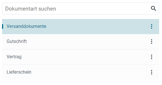 Liste Ihrer selbst angelegten Dokumentarten.